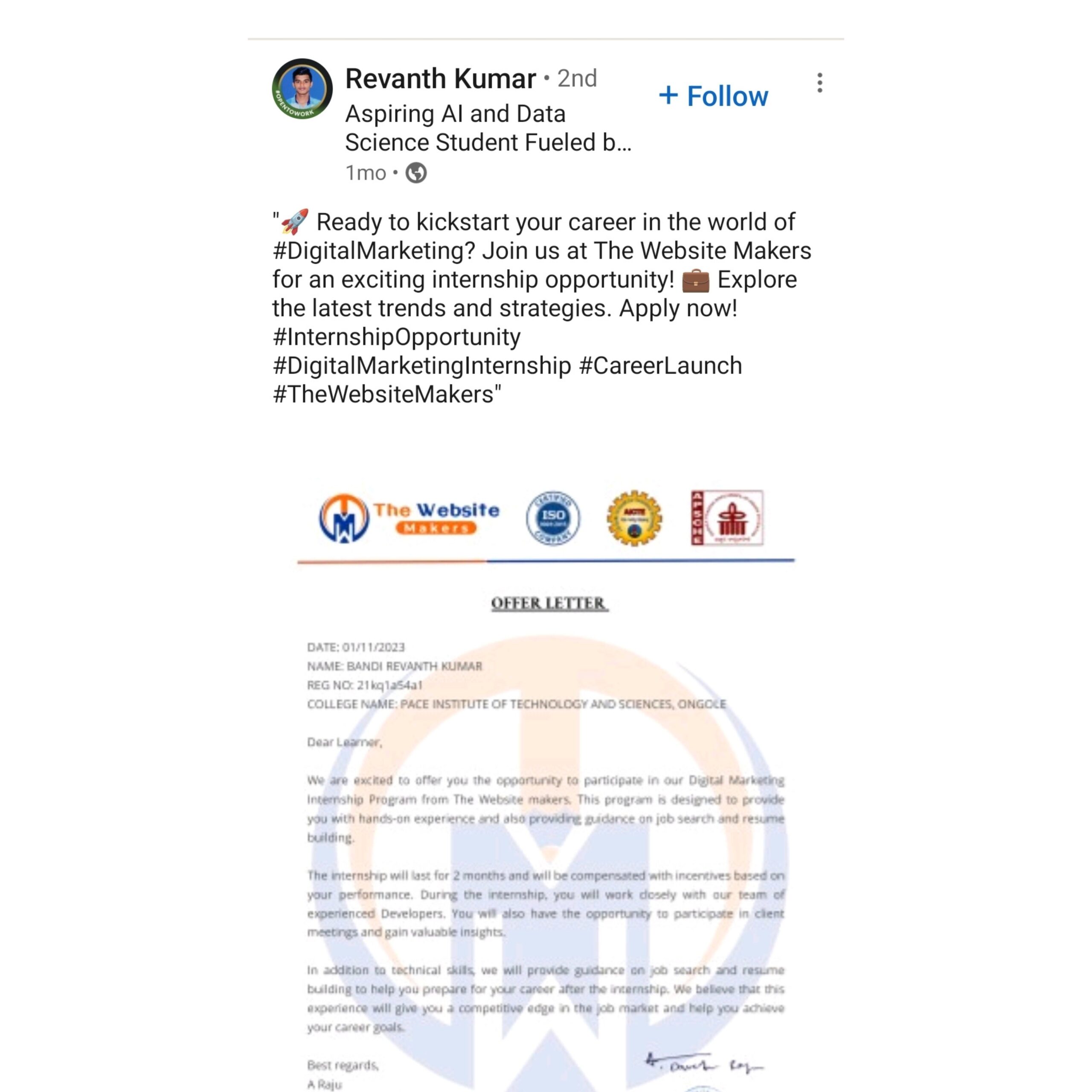 Get our industry-recognised Internship Certificate and showcase it in your resume and linked profiles to get more chances to get the Job.